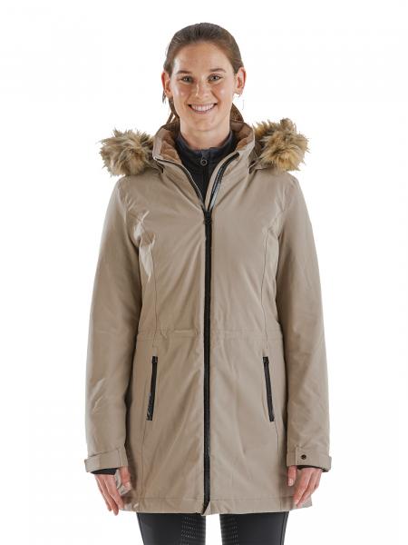 Feminine short coat with lightweight filling for optimum outdoor performance in cold and damp weather