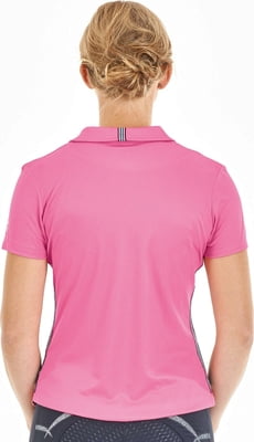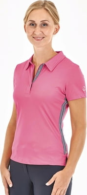 Flexible and yet dimensionally stable polo shirt for perfect wearing comfort. Conducts sweat and condensation to the outside to ensure a pleasantly dry feeling on the skin. Concealed button placket with logo button as a detail on the outside. Rhinestone logo on the sleeve.