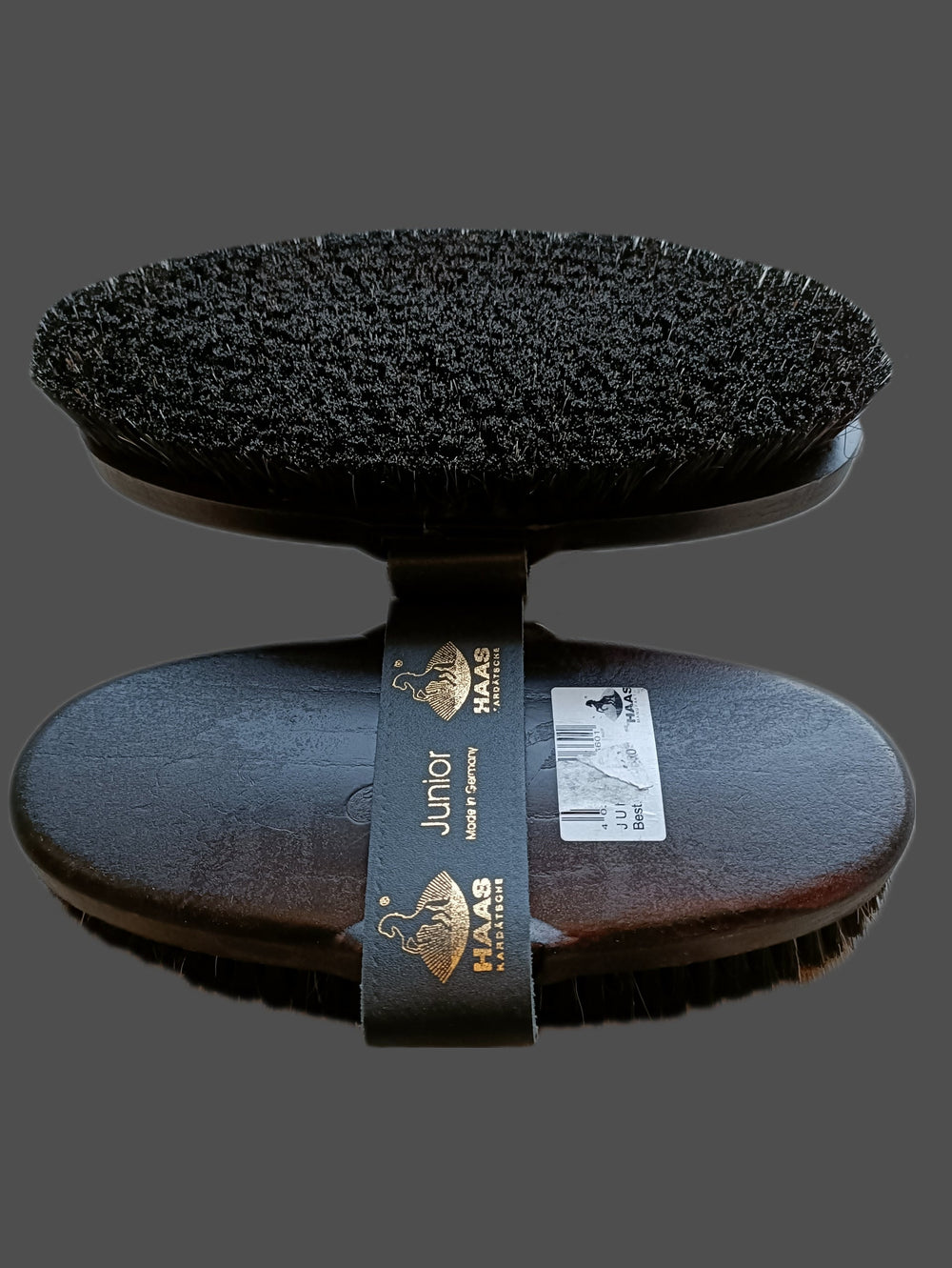 Selected horse hair and natural bristles with the smallest amount of synthetic fibres have been used in the manufacturing process of this brush.