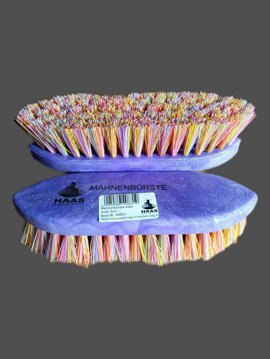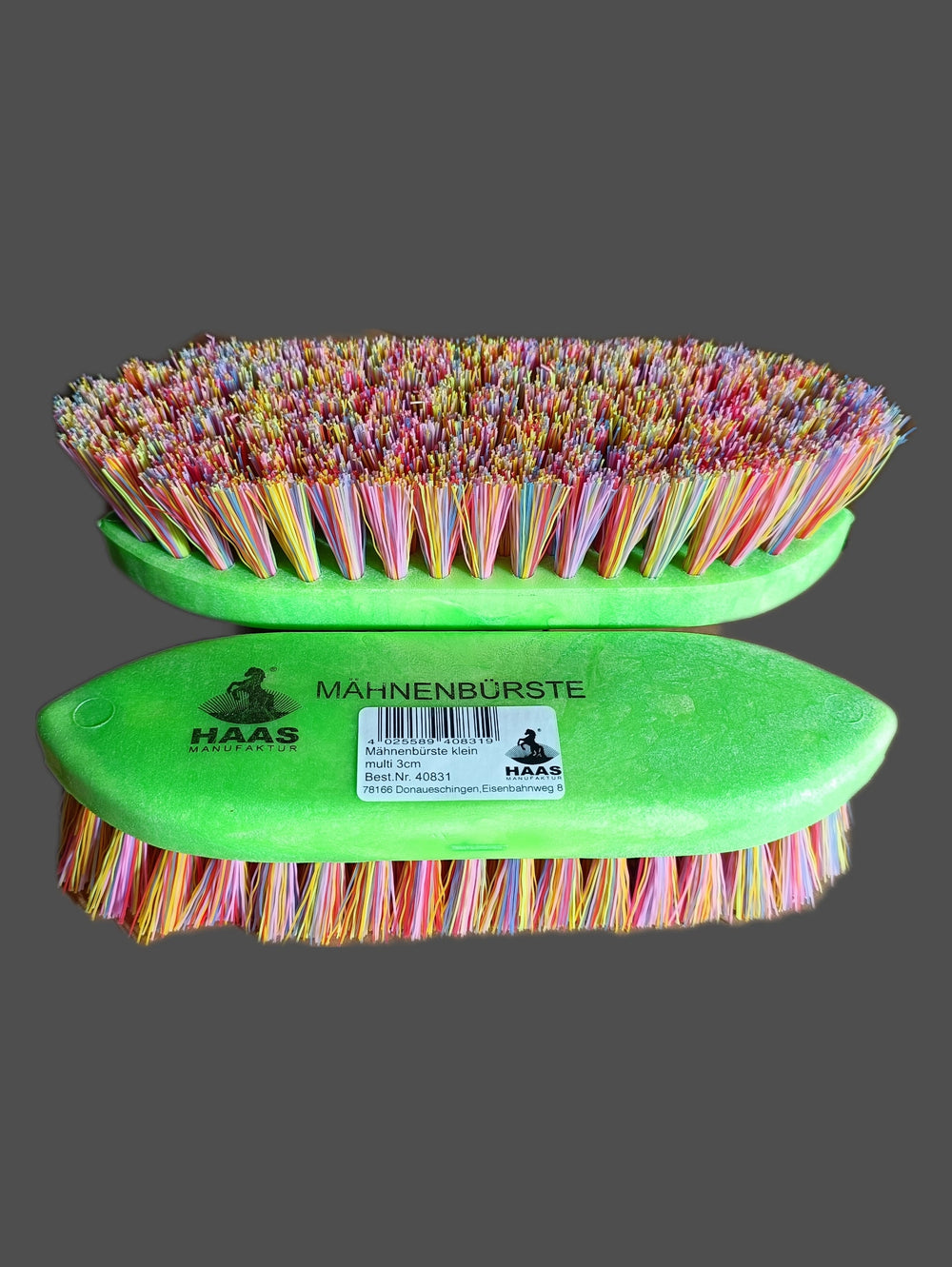 The HAAS Mane Brush Small 3 CM Multi features 3 cm long plastic bristles, measuring 180 x 53 mm.