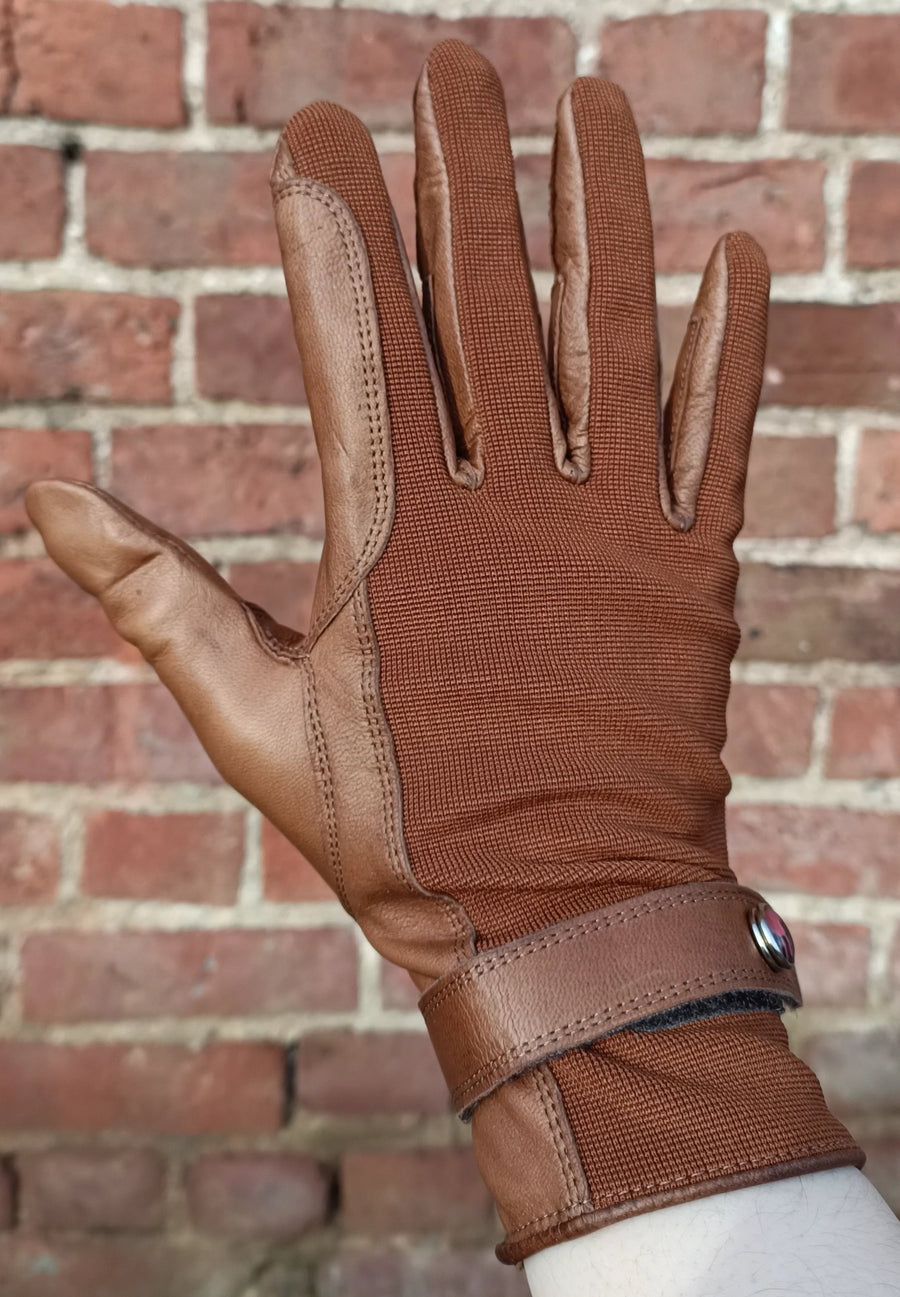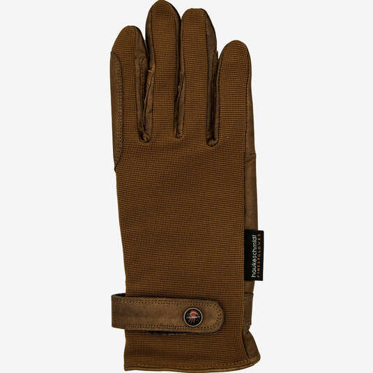 • Palmhand made of brown tacky leather, backhand made of elastic and breathable “Spandex”