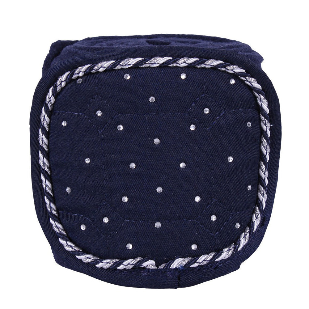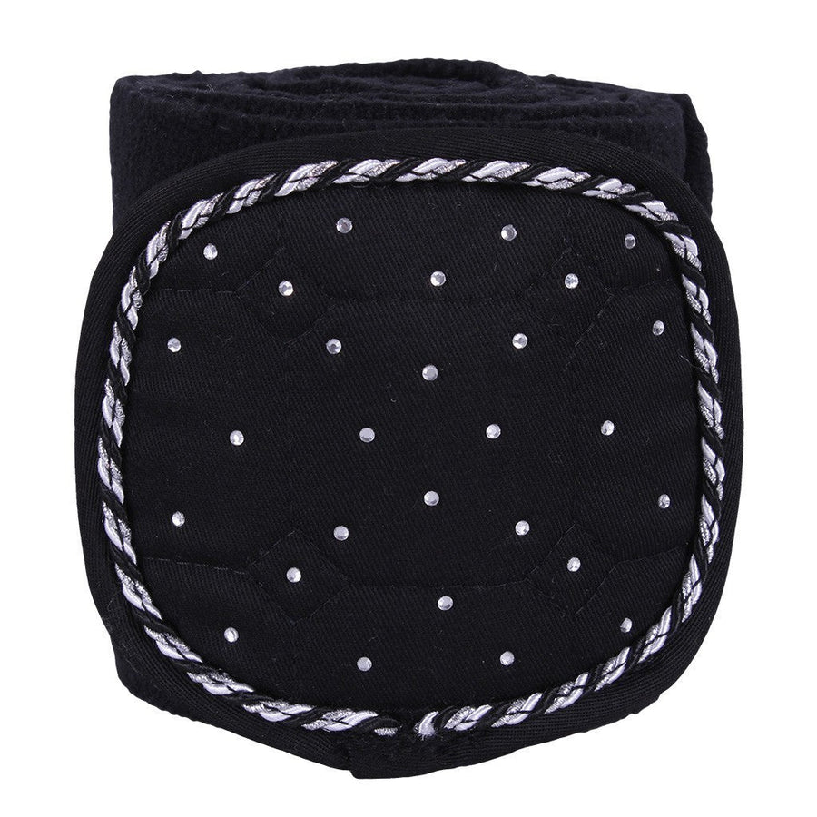 Set of four fleece bandages with Velcro closure. The bandages are equipped with a Velcro patch decorated with rhinestones and a decorative cord. The patch is adjustable so it can be positioned on the outside of the leg.