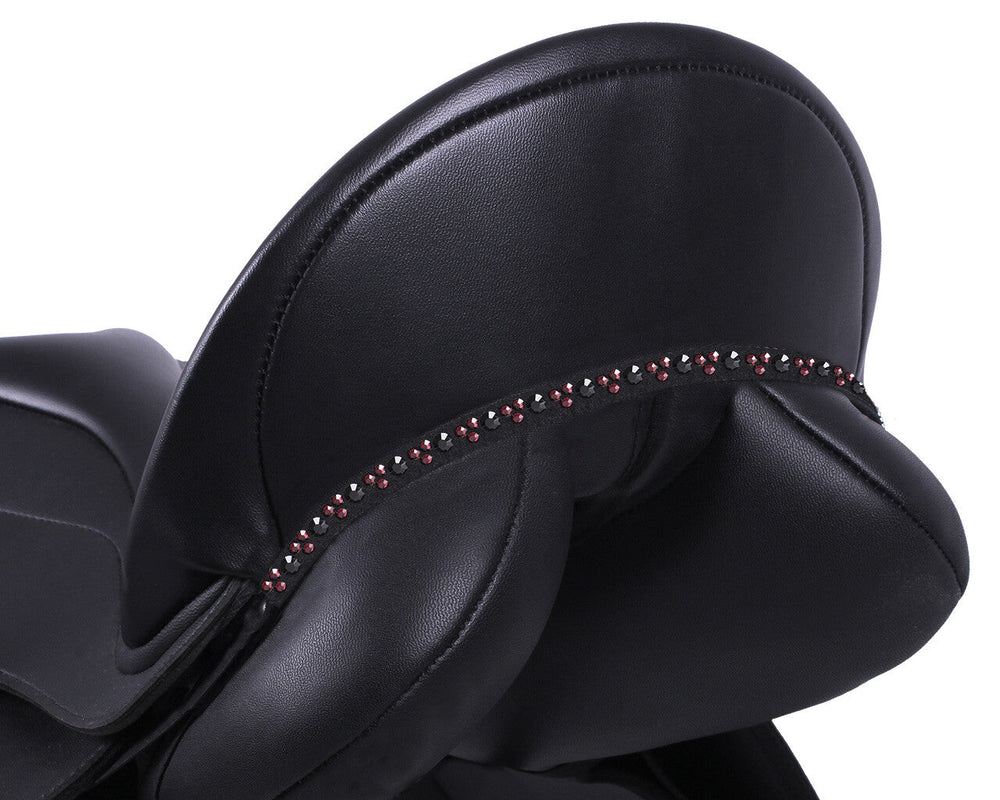 Decorate your saddle with a little bling with these saddle jewels. Decorated with large black-coloured and small burgundy STELLUX™ crystals which reflect extra light for a beautiful shine. Easy to attach by sliding the loops around the saddle flaps.