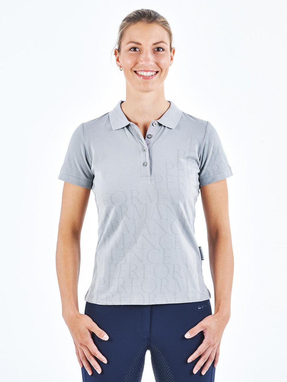 • classic ladies´ polo-shirt with asymmetric tone in tone "PERFORMANCE" print