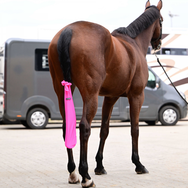 idealny do transportu chroni ogon przed końskimi odchodami i powstałymi zrostami, gdy konie coraz częściej upuszczają na przyczepę lub transporter