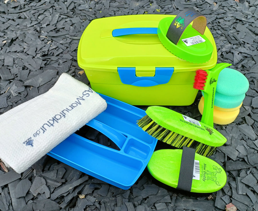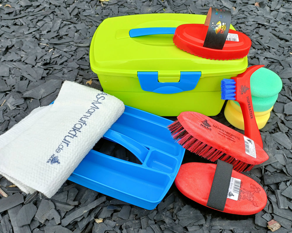 Introduce your young equestrian to the world of grooming with the HAAS Children Starter Box. This thoughtfully curated set provides all the essential tools needed for children to care for their equine companions, making grooming both fun and educational.