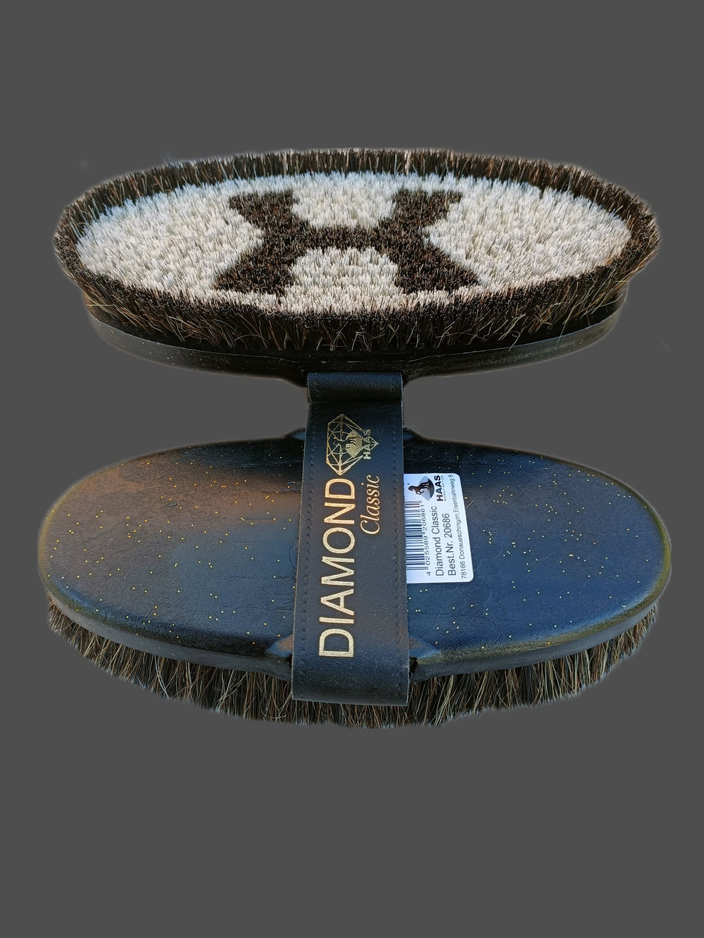 The HAAS Diamond Classic features a distinct bristle arrangement, with longer outer bristles than inner bristles for maximum efficacy in dust removal.