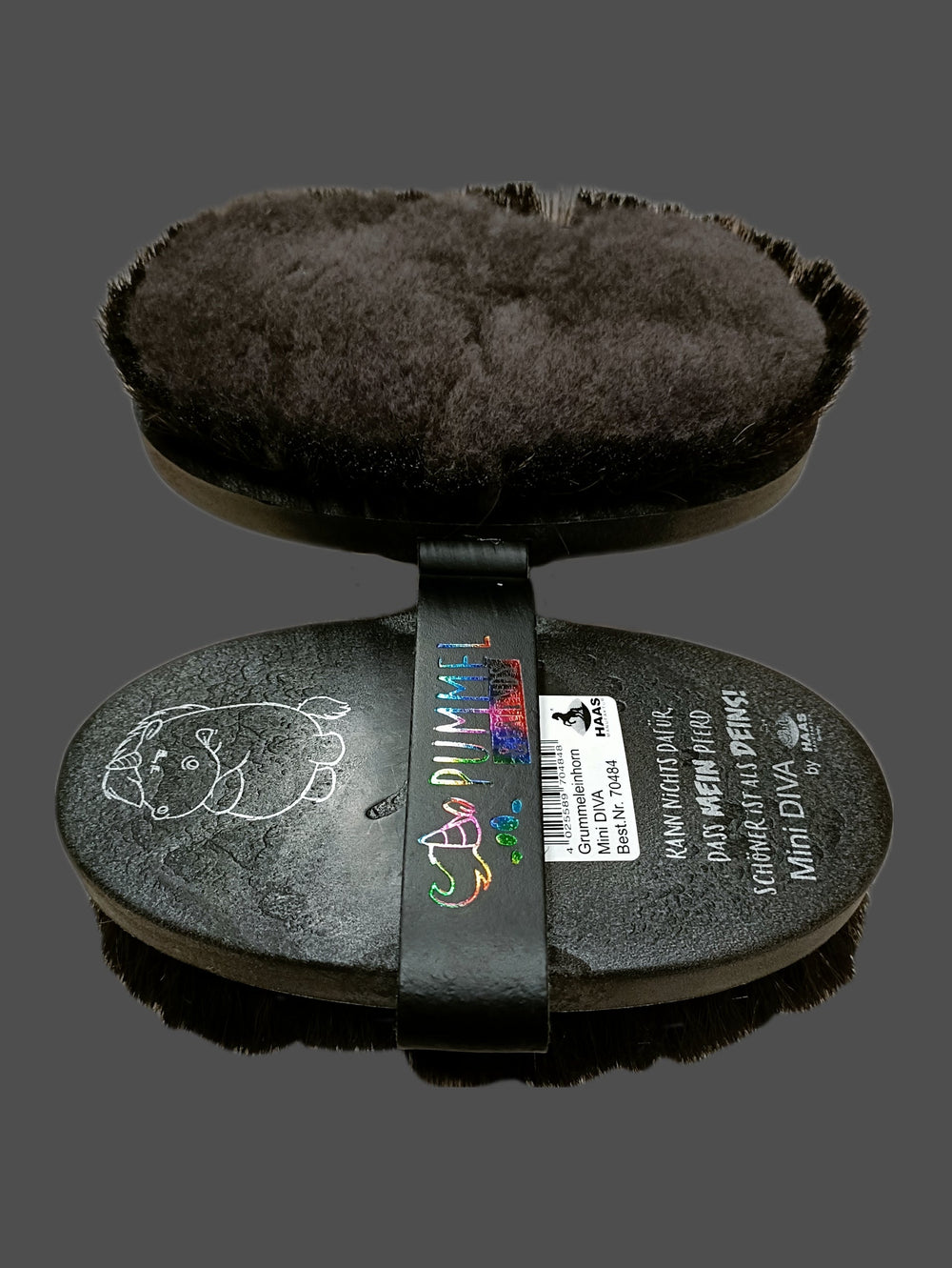 Can't help that my horse is more beautiful than yours !!! It's not difficult with the Grummel Mini-Diva either! MEGA shine through the lambskin and the finish of the bristle ring